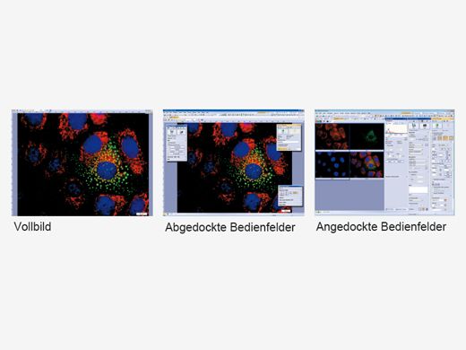 Die abgedunkelte Softwareoberfläche reduziert das vom Monitor erzeugte Umgebungslicht und erlaubt cellSens Benutzern die Gewöhnung an abgedunkelte Umgebungen. Der Symbolkontrast bleibt für eine einfache Erkennung und eine schnelle Auswahl hoch. |