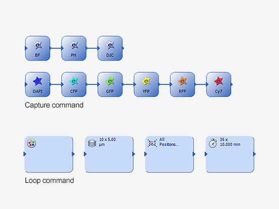 ![]() | EASE OF USEFully automated multi-dimensional observation (X, Y, Z, T, wavelength, and positions) with easy experiment set up using the Graphical Experimental Manager (GEM) in cellSens Dimension imaging software. |