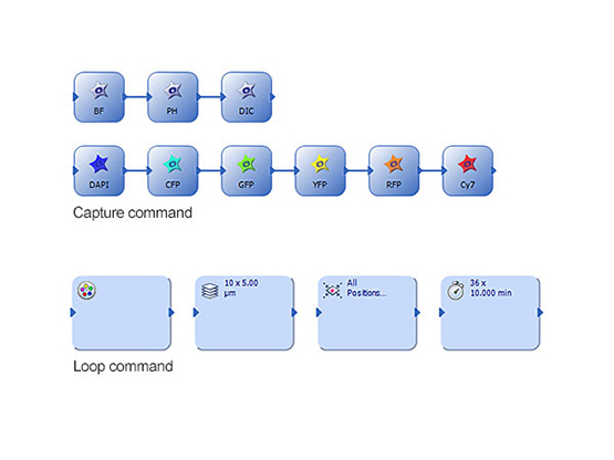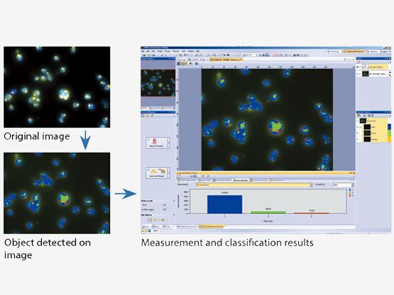 WELL PLATES MADE SIMPLEThe well plate navigator in cellSens software and its database function enable proper screening during an experiment. In combination with the well navigator solution, the database solution improves the efficiency of viewing and analyzing well plate images with a large amount of data. By clicking on icons for image information such as the date, file name, or well plate number, any selection of captured images can be viewed for further analysis. This solution also enables continuous analysis of selected images (the batch macro function) using the well plate GUI. |
