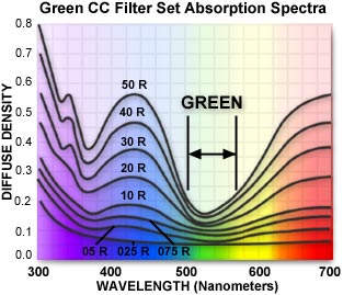 Nominal peak densities of green color compensating filters are listed in Table 1, along with the expected exposure increase in f-stops for this series of filters.