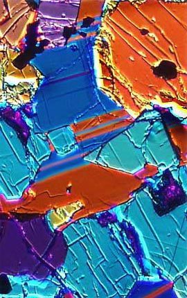 Thin sections of rocks recovered from the surface of the Moon by Apollo astronauts exhibit an array of colors when viewed through a polarized light microscope. Addition of Hoffman modulation optics to the recipe yields images that display an apparent three-dimensional character.