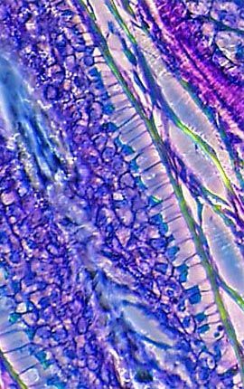 Tattoos are experiencing a dramatic surge in popularity, with more women acquiring this body art than ever before. The phase contrast image illustrated below was made from a stained thin section of human tissue emblazoned with a tattoo.
