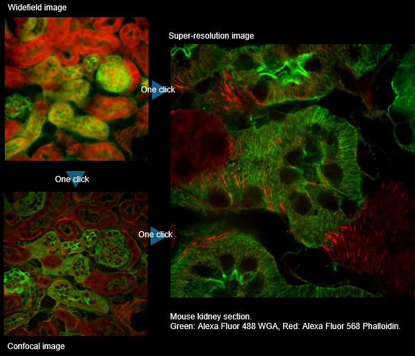 Reference: T. Azuma and T. Kei, "Super-Resolution Spinning-Disk Confocal Microscopy Using Optical Photon Reassignment, " Opt. Express 23, 15003-15011 (2015). |