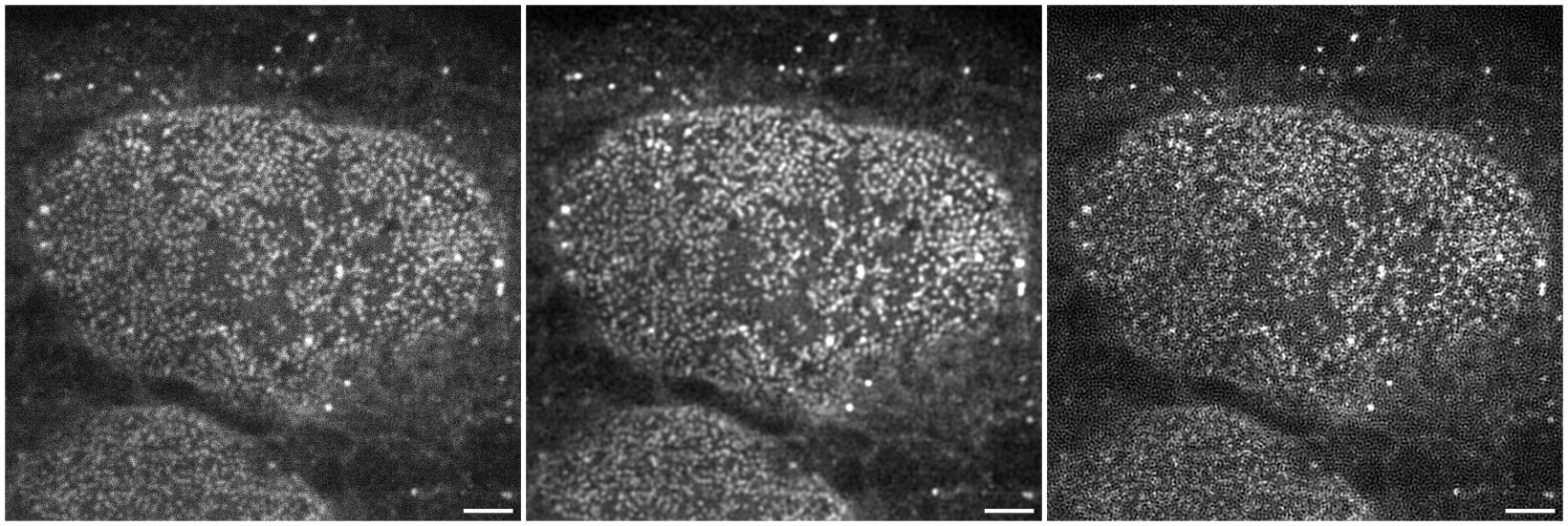 Figure 5. Differences in processing of nuclear pore fluorescence images with low SNR.