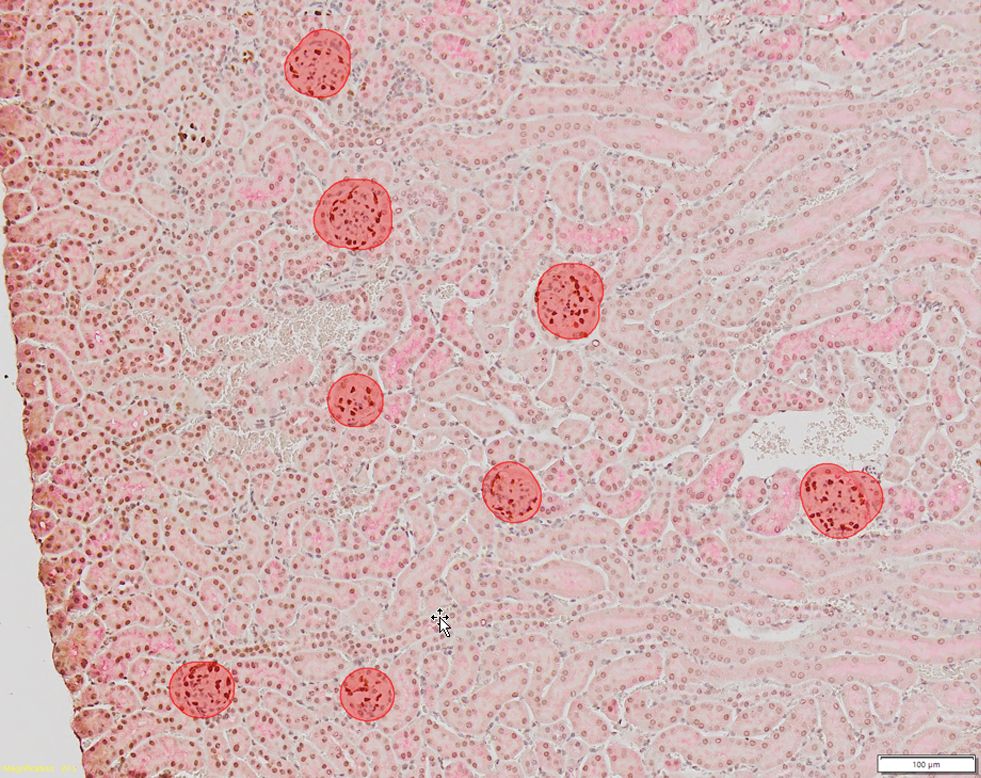 腎臓は、糸球体の助けを得て、体全体の健康を維持するために役立つ極めて重要なたくさんの機能を発揮します。 糸球体は、血漿をろ過して恒常性を維持する腎臓の組織です。 糸球体はいくつかの疾患によって影響を受ける可能性があり、科学者が広く研究しています。 科学研究の基礎的な部分には、膨大な数の腎臓切片の解析が含まれており、特殊な構造を解明するため、さまざまな染色方法で処理されます。