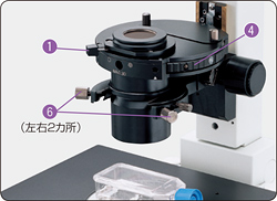 ※容器の平面性が悪いときは、最良のコントラストを得るために再度の心出しが必要なことがあります。心出しは、倍率ごとに調節します。