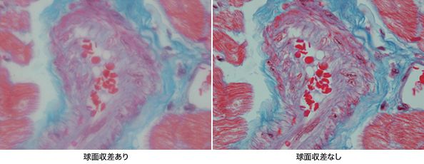 | 明視野観察用対物レンズ | 明視野観察用で、色のにじみが少なくコントラストが高い。 |