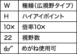 接眼レンズの鏡胴面には、種類、倍率、視野数など、レンズ性能を表す記号が記されている。