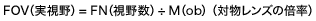 接眼レンズで実際に観察している視野が、標本上ではどれだけの範囲にあたるかを示したものを「実視野(FOV:Field Of