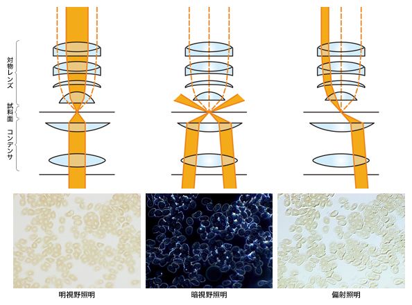 顕微鏡観察では、試料にどのように光を当てて観察するかで、その見え方は大きく変わる。