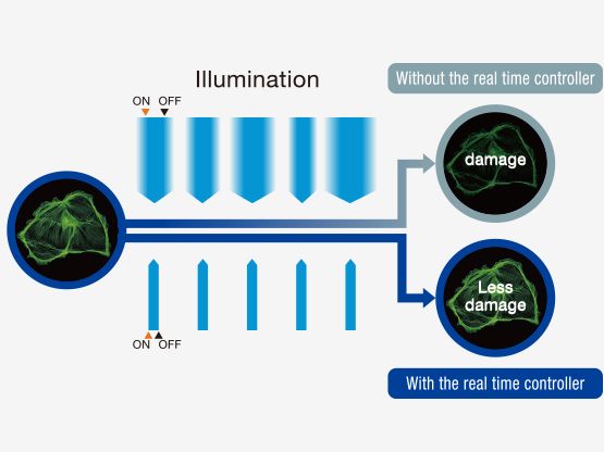 快速的滤波器轮、挡板、LED 光源控制和实时控制器 (U-RTC) 可以降低光漂白和光毒性,因此可以使细胞更加健康,数据更加稳定。