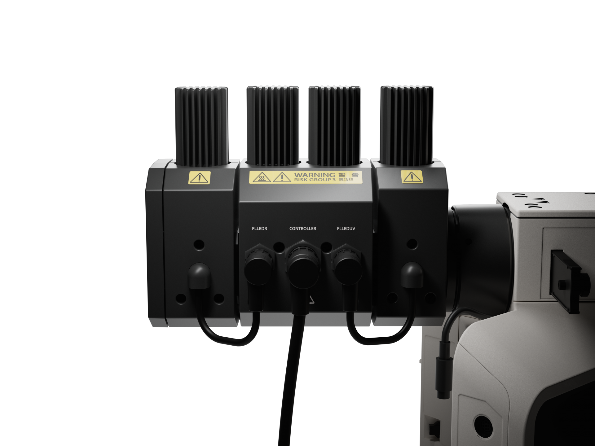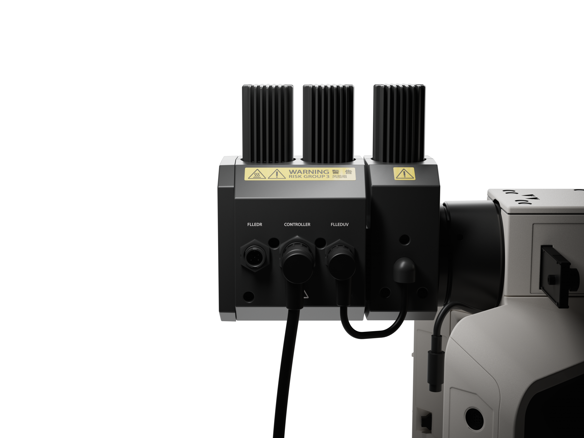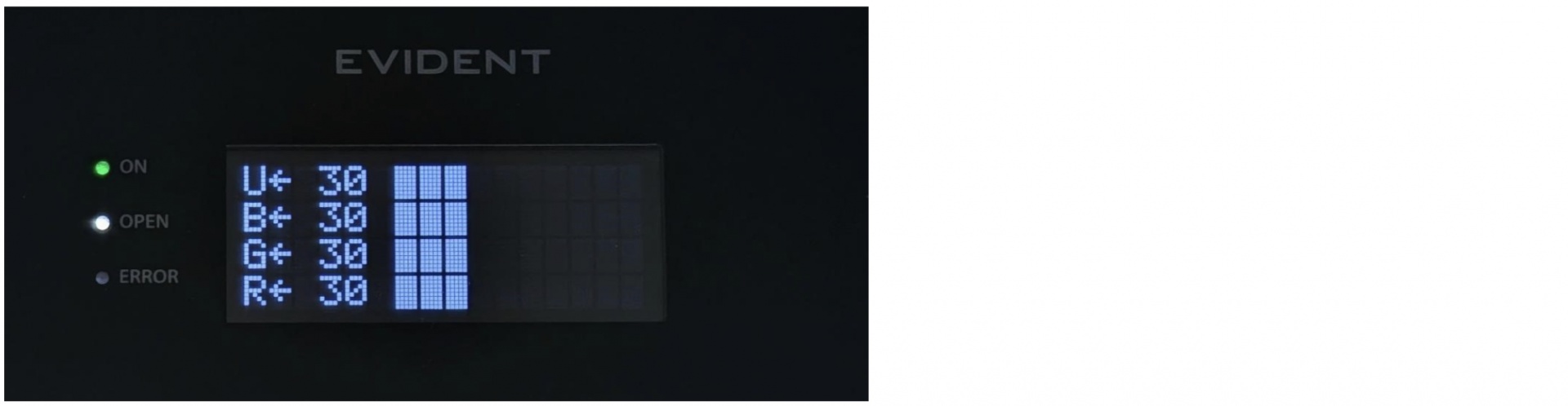 ![]() U-FLLED 系统具有蓝色和绿色 LED 光源,安装于 BX53 显微镜上。 | ![]() U-FLLED 系统配备两个光源模块。 从左到右: U-FLLED(蓝色/绿色)和 U-FLLEDUV(紫外线)。 | ![]() 完整的 U-FLLED 系统包含三个模块。 从左到右: U-FLLEDR(深红色)、U-FLLED(蓝色/绿色)、U-FLLEDUV(紫外线)。 |