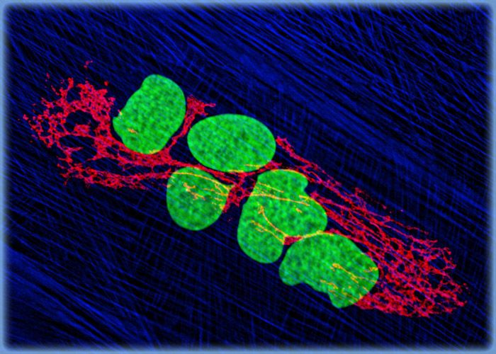 The morphology of A-10 cells is similar to that of myoblasts, the precursors of muscle fibers. In culture, the cells grow adherently and generate spontaneous action potentials at the stationary phase of the growth cycle. An increase in activity of the enzymes myokinase and creatine phosphokinase in the cells has been documented.