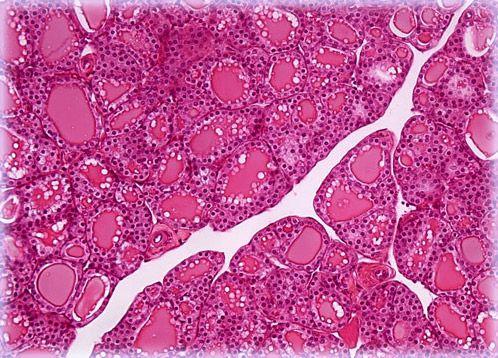 The thyroid is an endocrine gland situated in the throat that produces hormones that are involved in various functions within the body. Comprised of two oblong lobes linked by a narrow piece of tissue called the isthmus, the thyroid contains millions of small sac-like follicles that store the important substances.