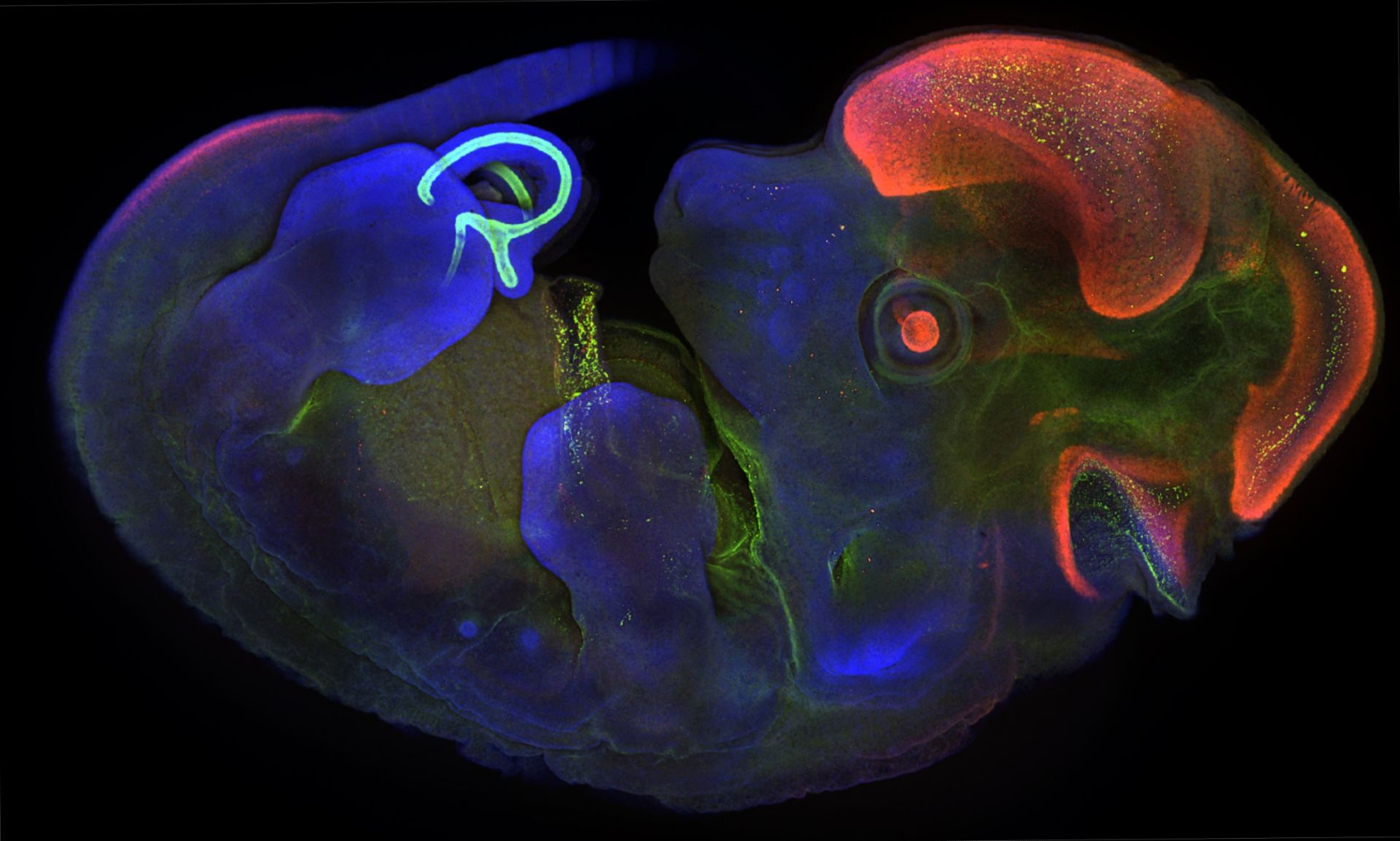 Evident spinning disk confocal microscope systems are designed to help you quickly document your experiments in high resolution, whether you need to cover large tissue sections or capture high-speed subcellular activities at the nanoscale. | Mouse embryo. SOX1 (Cy3), CDX2 (green), DAPI (blue). Courtesy of Dr. Yingying Chen, Naihe Jing’s Lab. |